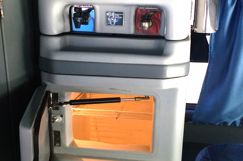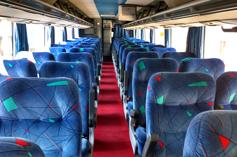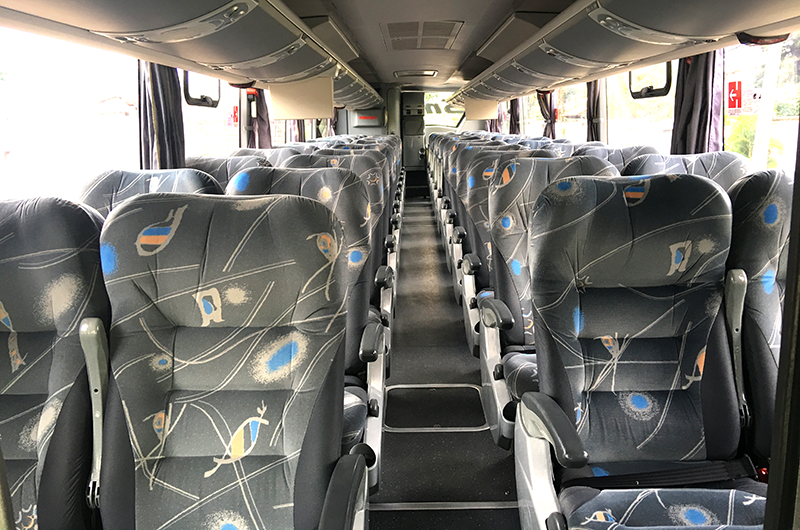Padrão Executivo/Turismo Luxo Compartimento isolado do motorista Ar condicionado central Poltronas soft Geladeira DVD com monitores CD Microfone Vidros lacrados e com Insulfilm Capacidade: até 46 passageiros + Motorista